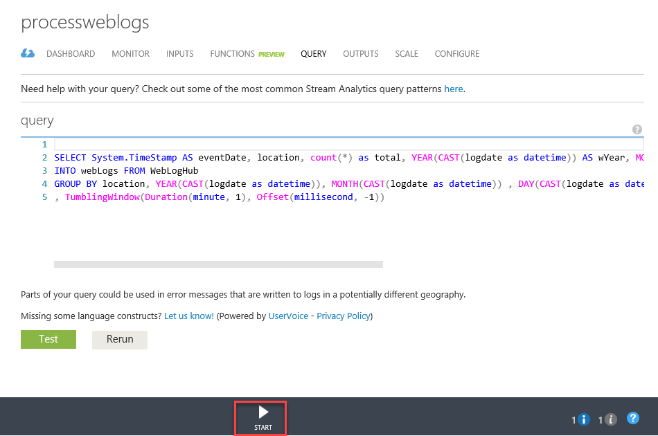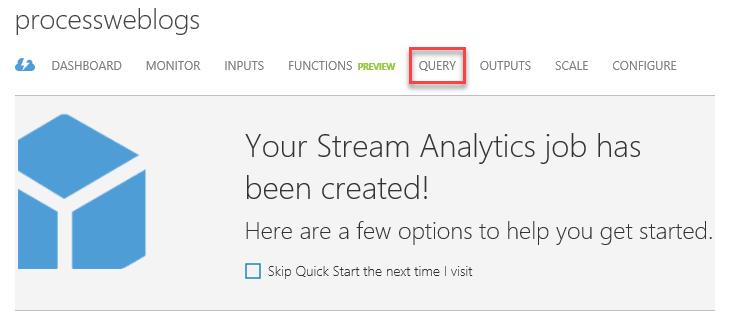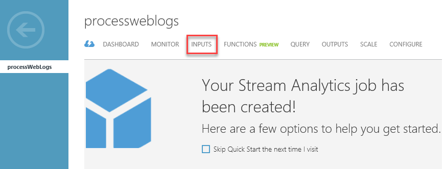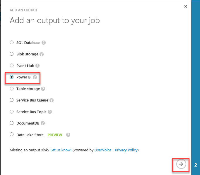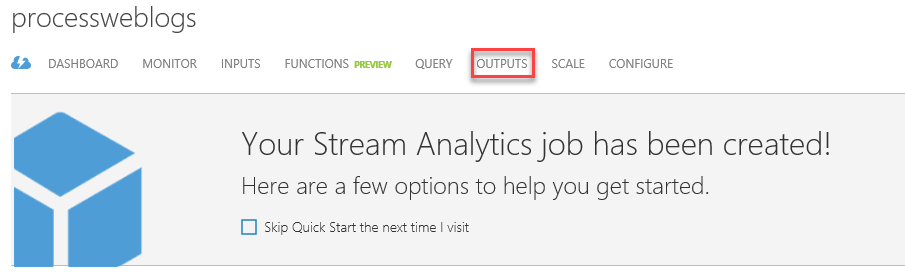 Go back to Stream Analytics and click OUTPUTSClick ADD OUTPUT