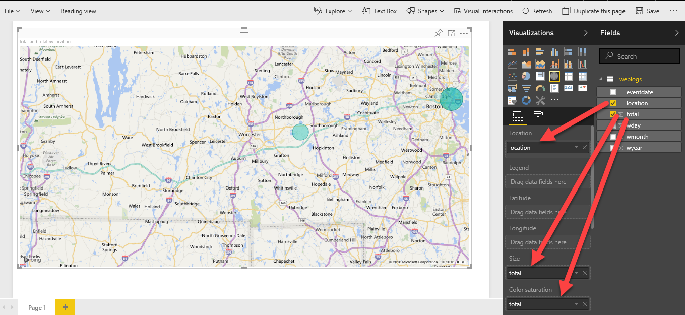 Drag location and drop to Location, and total to Size and Color Saturation.