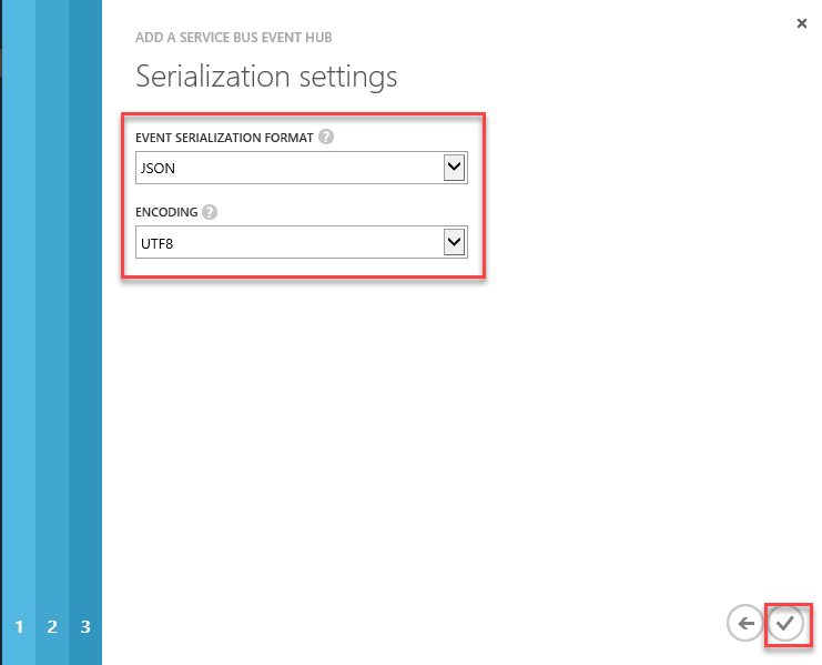Select JSON as Event Serialization Format and UTF8 as Encoding